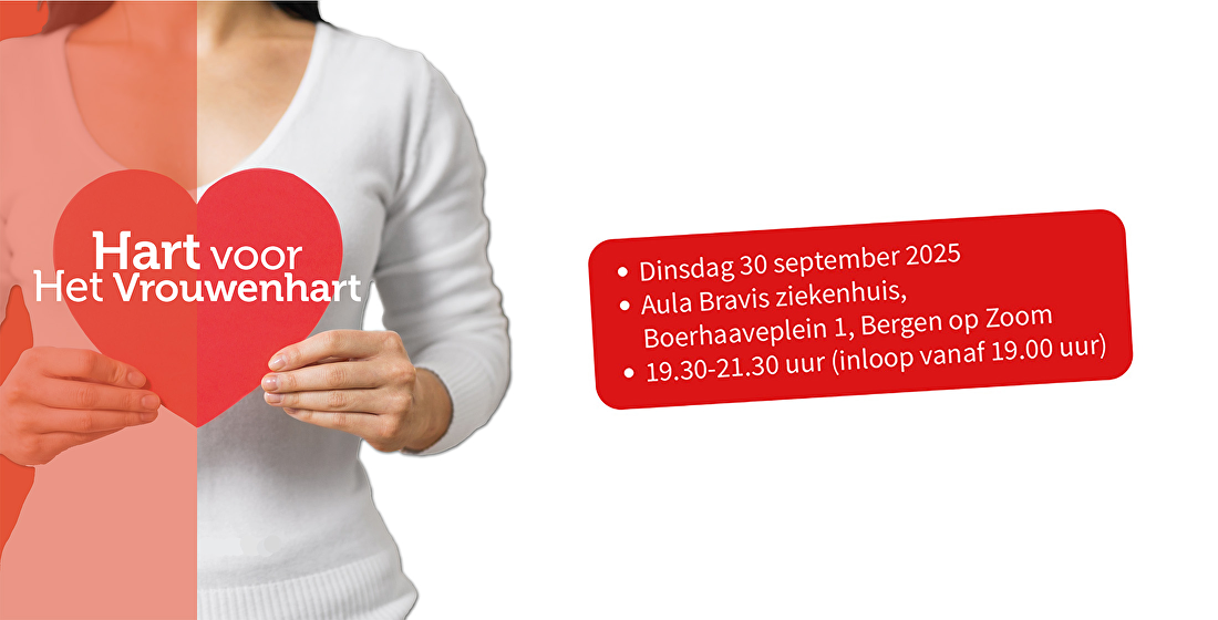 Aanmelden kan via www.bravis.nl/vrouwenhart. Wees snel, want het aantal zitplaatsen is beperkt.