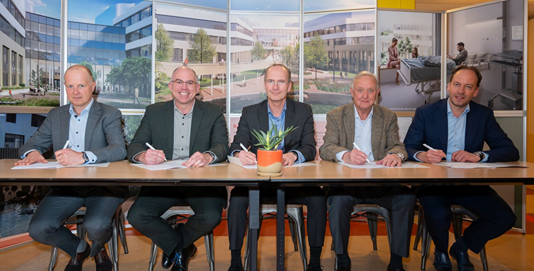 Donderdag 2 april is de zogenoemde verificatieovereenkomst ondertekend tussen het Bravis ziekenhuis en FourCare. Hiermee is een volgende stap gezet richting de bouw van het nieuwe ziekenhuis op De Bulkenaar. Na de verificatiefase volgt de ondertekening van de definitieve aannemingsovereenkomst.