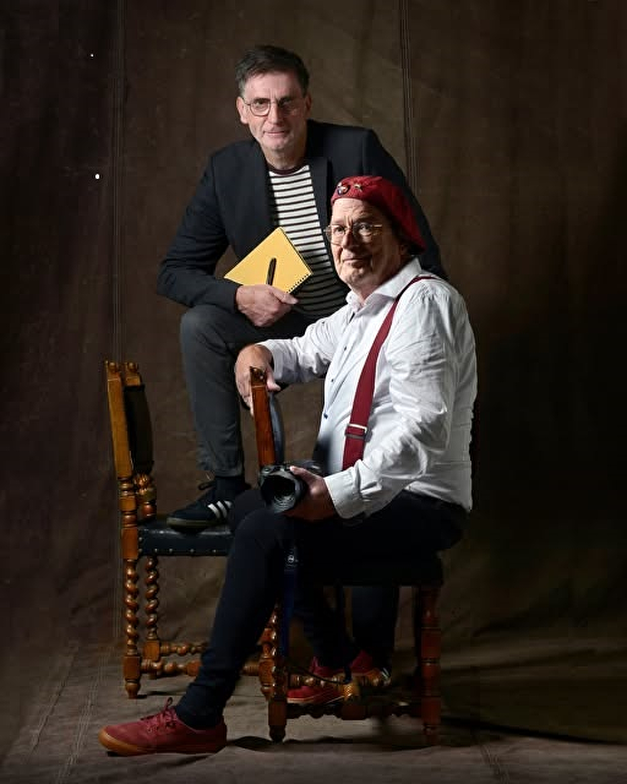 en de toen zojuist benoemde Stadsdichter Leo Lotterman een tafeltje op de Oude Markt deelden. Aad had enige tijd ervoor een beroepsportret van Leo gemaakt voor krantenpublicatie, en tijdens de totstand-koming ervan bleek er een creatieve klik tussen beide personen te ontstaan.