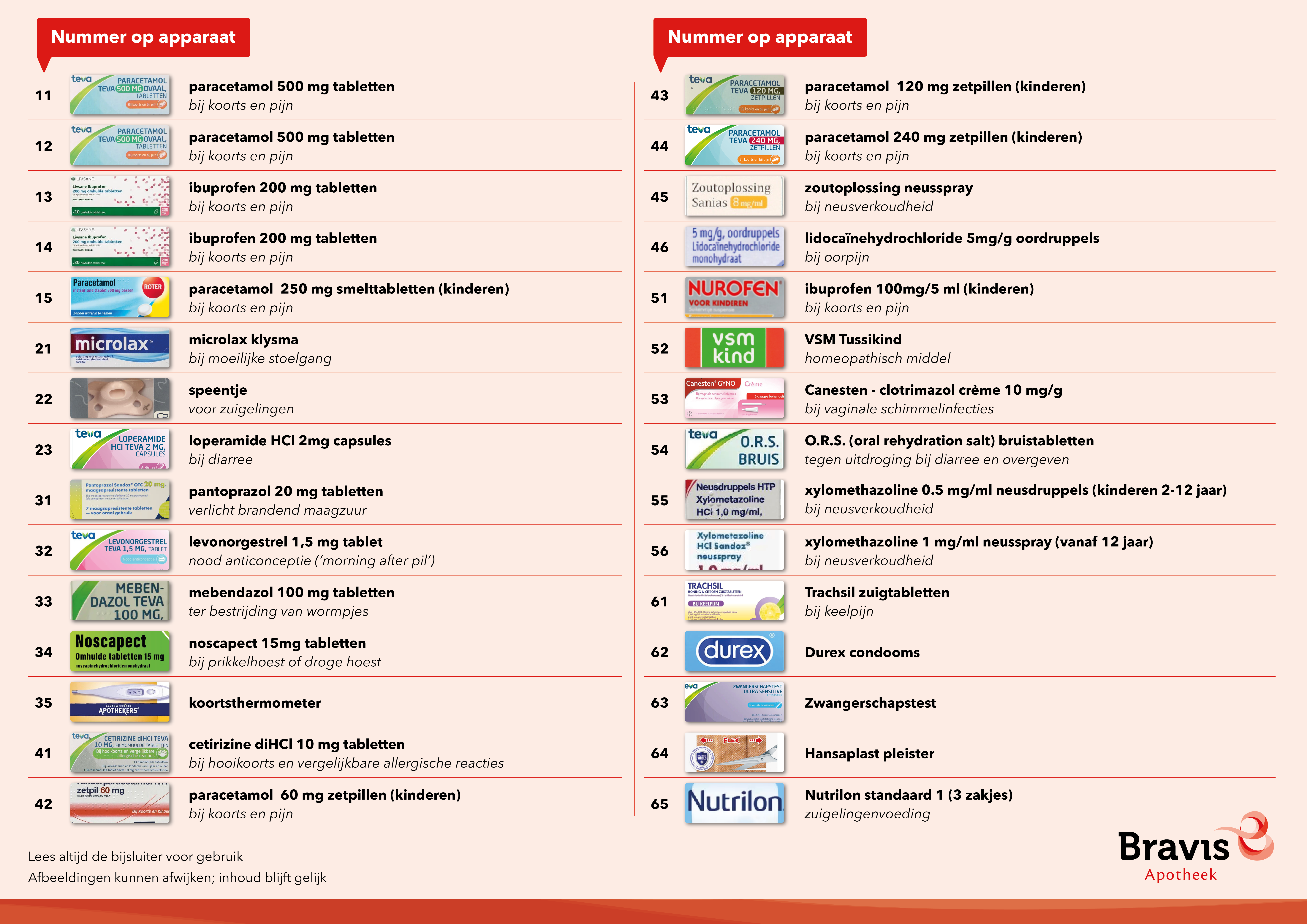 In het Bravis ziekenhuis in Roosendaal zijn de meest gangbare medicijnen-zonder-recept ook gedurende de nacht verkrijgbaar. In de wachtkamer van de huisartsenpost en de spoedeisende hulp staat een automaat waarin dertig producten worden aangeboden, die 24 uur per dag, 7 dagen in de week verkrijgbaar zijn.
