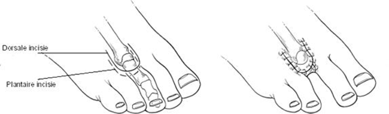 Meestal sluit de arts de wond. Bij een vergrote kans op wondinfectie kiest men er voor de wond open te laten. Als de infectieverschijnselen onder controle zijn wordt de stomp gecorrigeerd en de wond gesloten.
