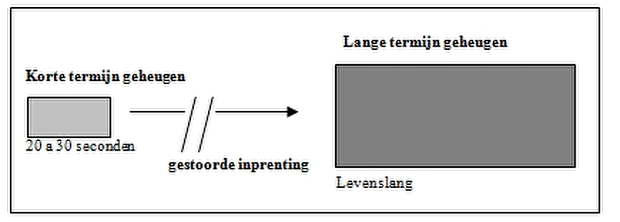 Door dementie is iemand niet meer in staat informatie van het korte- naar het lange termijn geheugen te transporteren. De inprenting is gestoord. De patiënt herinnert zich daarom niet meer wat hij/zij langer dan een halve minuut geleden heeft ervaren.