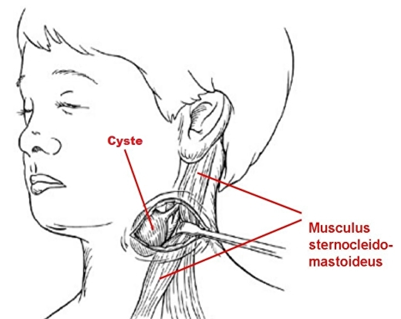 De operatie vindt plaats onder algehele anesthesie. De chirurg verwijdert de cyste volledig. Bij de mediane cyste neemt de chirurg ook een stukje van het tongbeen weg. Voor een mooi (cosmetisch) resultaat probeert de chirurg de wond in een bestaande huidplooi te maken.