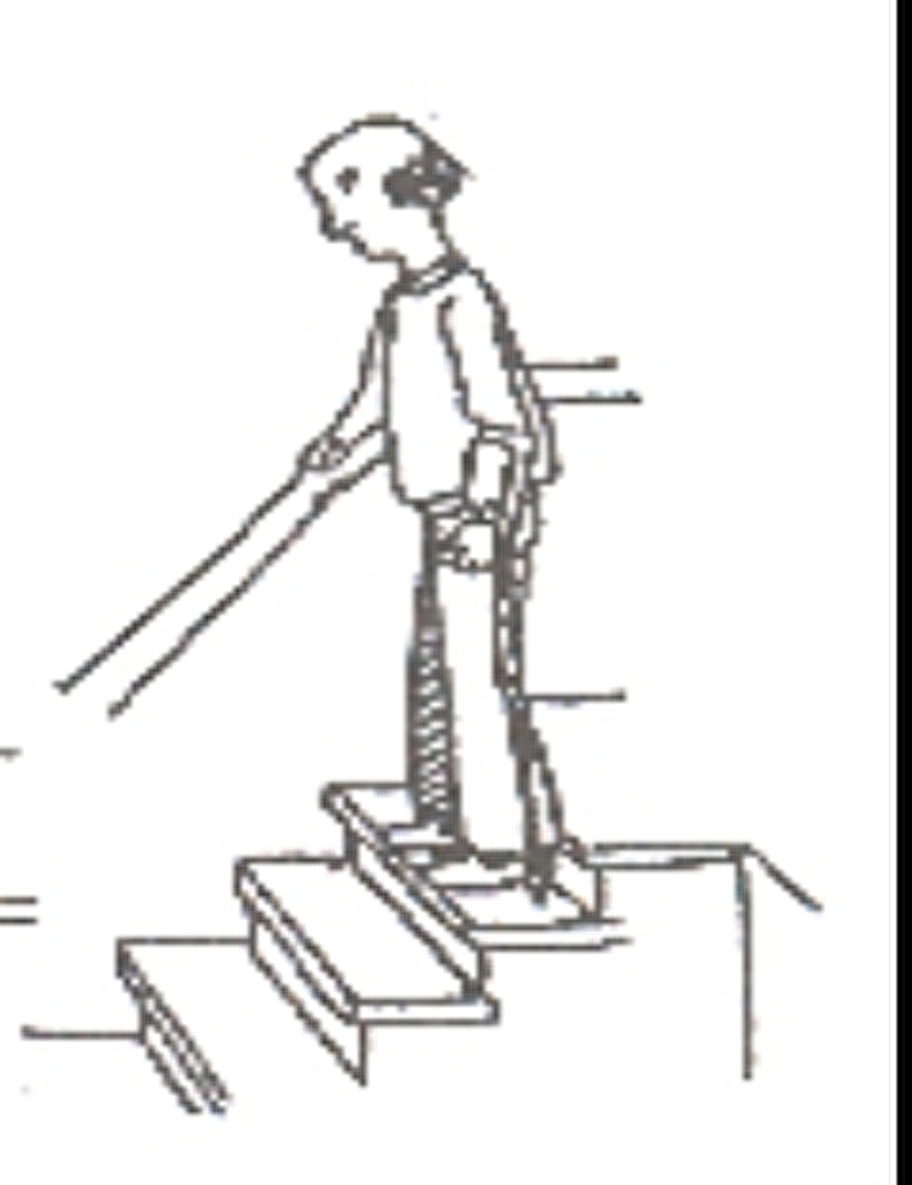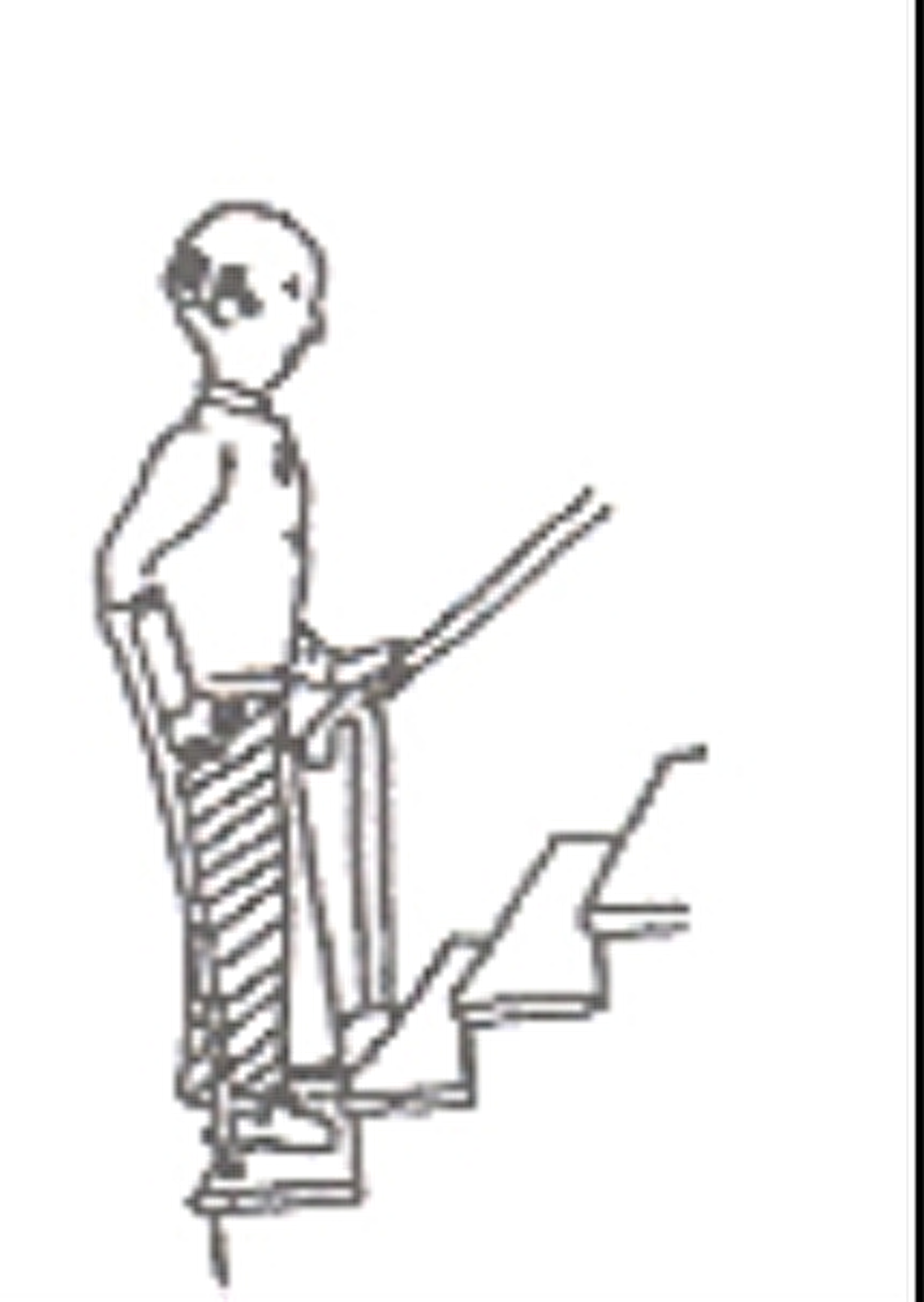 U loopt altijd belast de trap op en af met één elleboogkruk.
