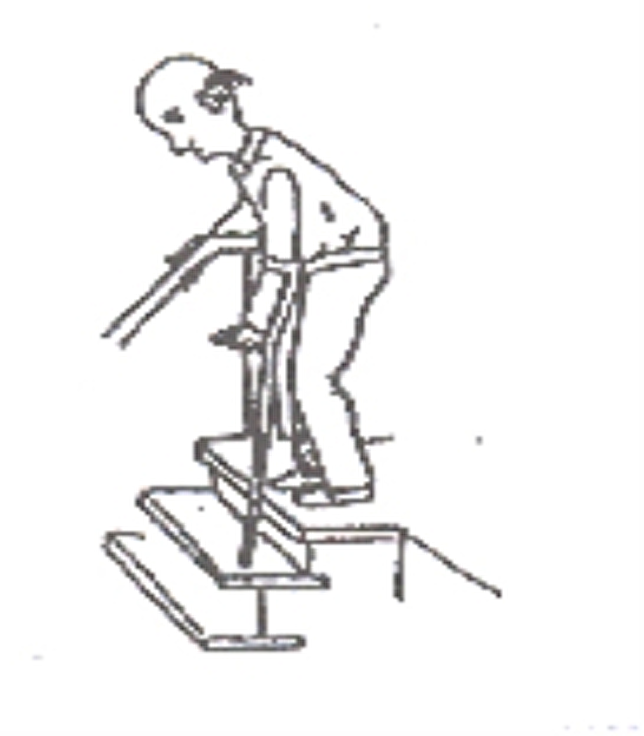 - Zet de voet van uw gezonde been op de volgende trede.