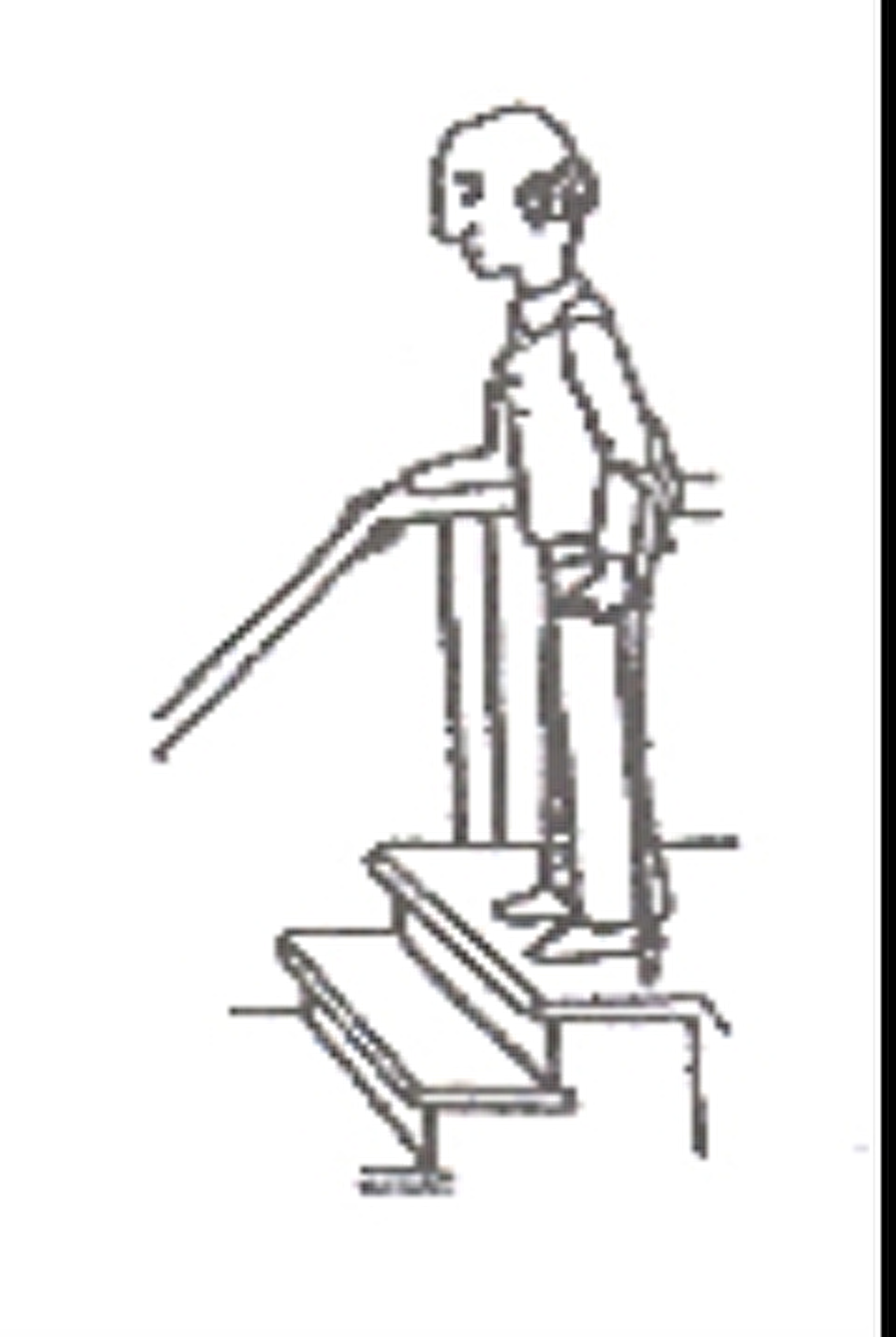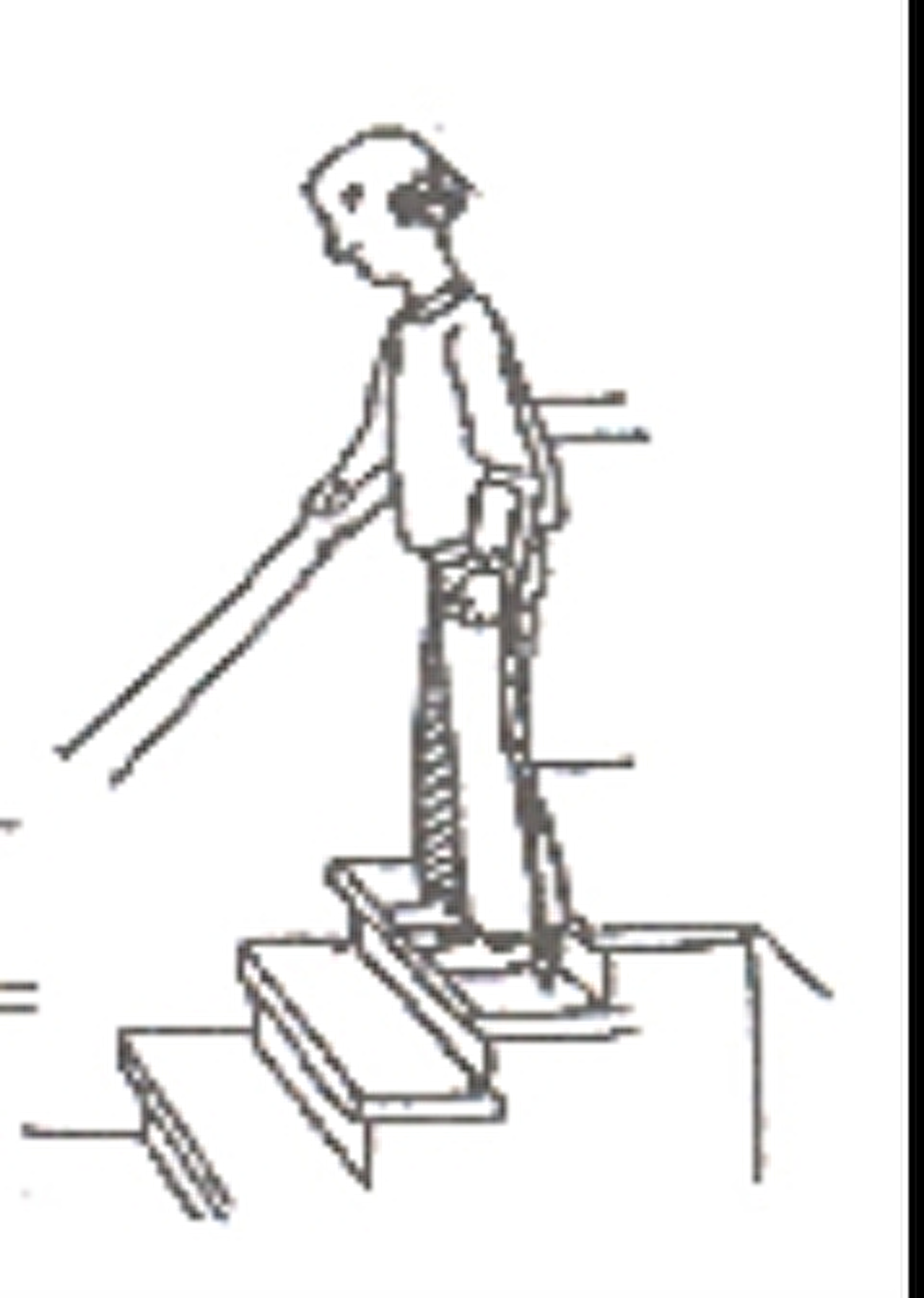 U loopt altijd onbelast de trap op en af met één elleboogkruk.