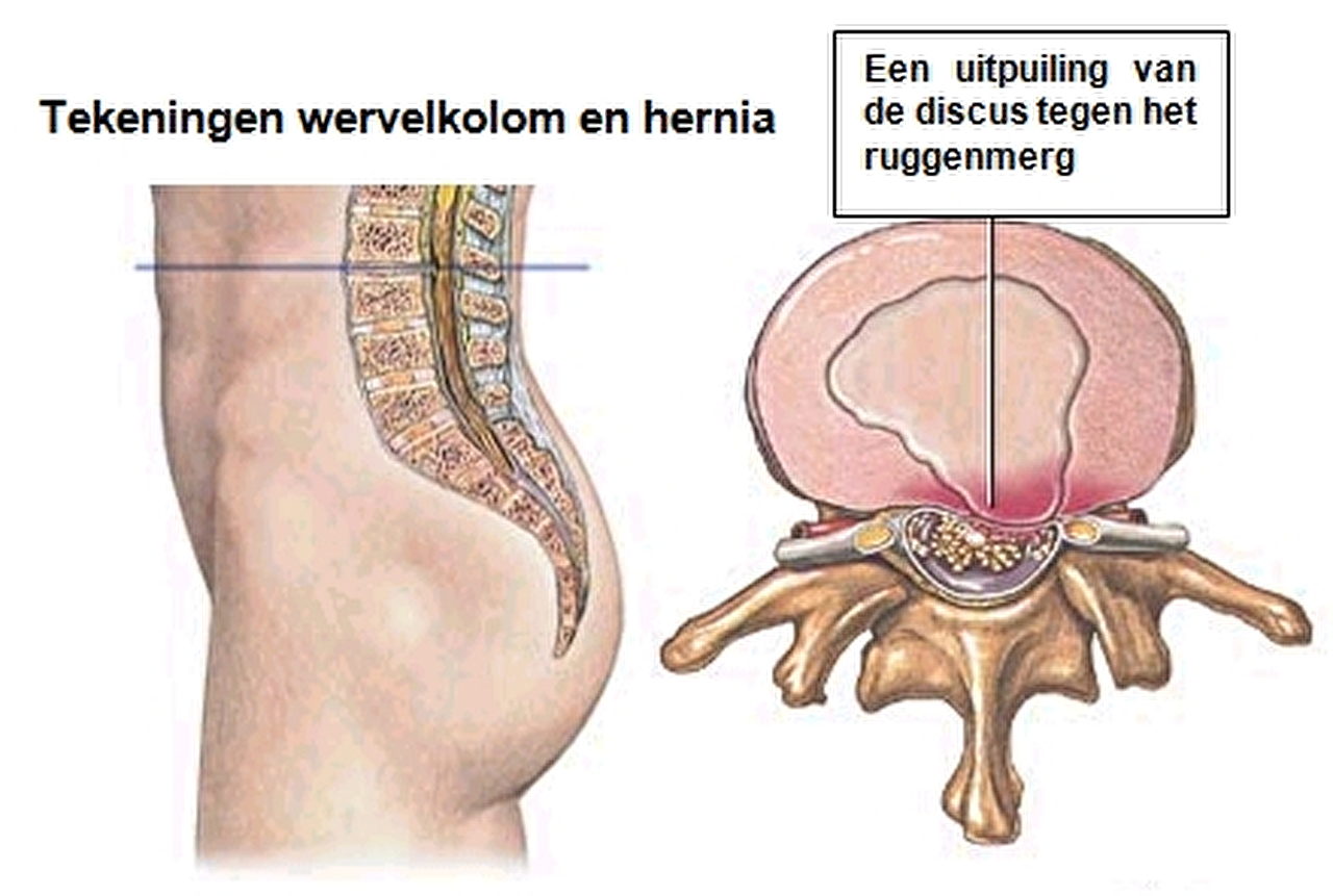 Een hernia is een uitpuiling van weefsel van een tussenwervelschijf. Tussenwervelschijven liggen tussen de wervels. De schijven bestaan uit een elastische zachte kern met een stevige omhulling. De elastische kern zorgt voor de beweeglijkheid van de wervelkolom. Als de stevige omhulling zwak is of zelfs scheurt, komt de zachte kern naar buiten. Deze uitpuiling kan een zenuwwortel beknellen, waardoor uitstralende pijn in het been en/of gevoelsstoornissen ontstaan. Bij een hernia operatie verwijdert de neurochirurg het uitpuilend weefsel, zodat de beklemde zenuwwortel weer vrij komt te liggen.