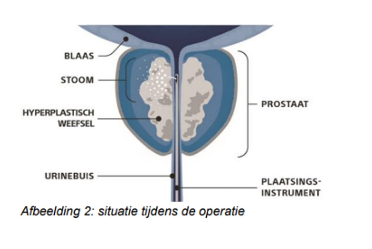 Het resultaat wordt na 4 tot 6 weken voelbaar en is na 3 tot 6 maanden maximaal. In het begin worden de klachten voor korte tijd erger omdat de plasbuis door de ingespoten waterdamp opzwelt. Daarom heeft u een week tot enkele weken een katheter in uw blaas. De duur hiervan is afhankelijk van de grootte van de prostaat. Dit is van tevoren met u besproken.
