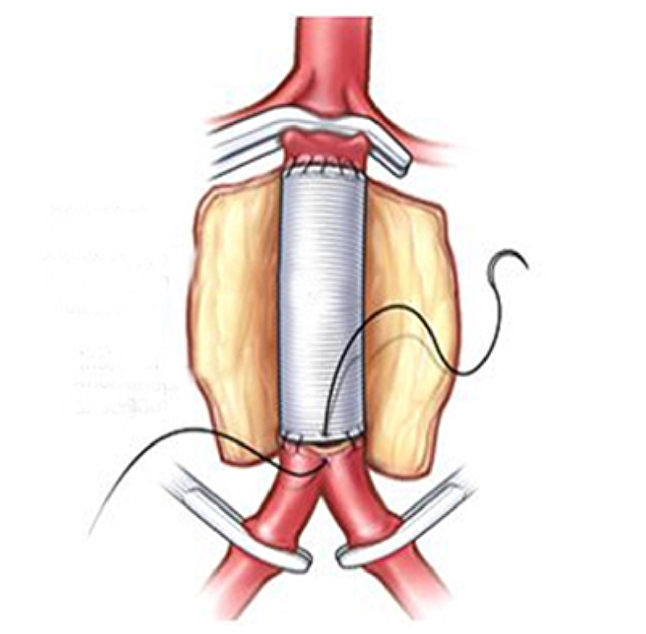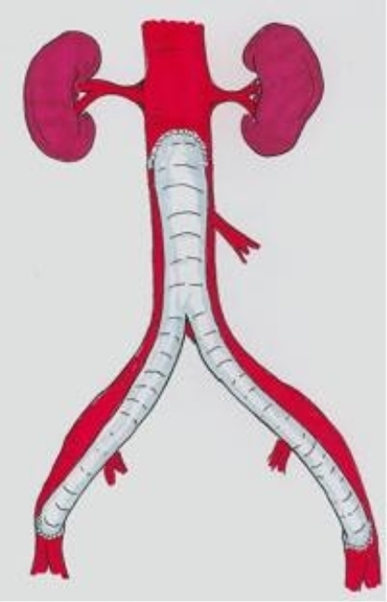 Bij een operatie wegens een vernauwing of afsluiting van de aorta wordt dit gedeelte van het bloedvat vervangen door een kunststof bloedvat (vaatprothese). Is de vernauwing beperkt tot de buikslagader, dan wordt een "buisprothese" ingehecht. Loopt de vernauwing door tot in de slagaders naar het bekken of de benen, dan zal een "broekprothese" gebruikt worden. Voor deze operatie wordt de gehele buik opengemaakt (van maagkuiltje tot schaambeen).