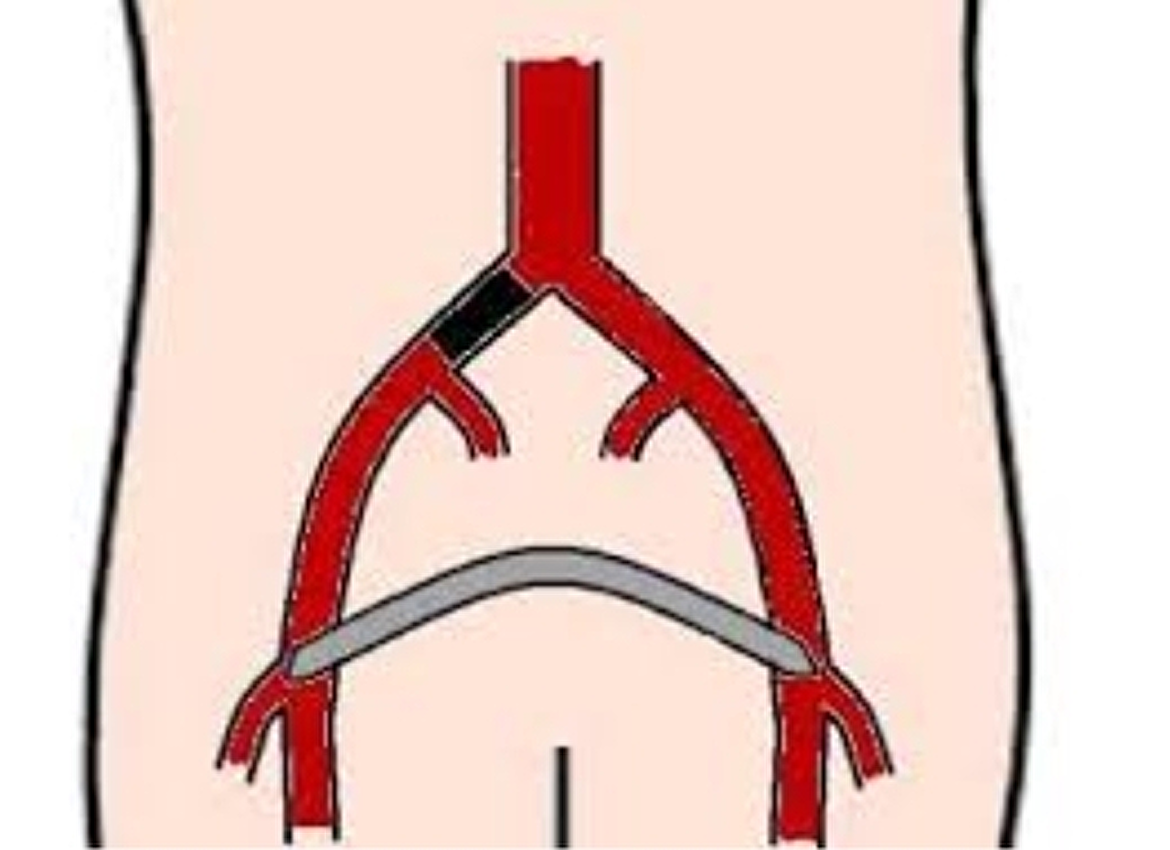 Dit houdt in, dat er een omleiding wordt gemaakt van de ene liesslagader naar de andere. Hierbij worden beide liesslagaderen vrij gelegd en wordt de bypass aangesloten.